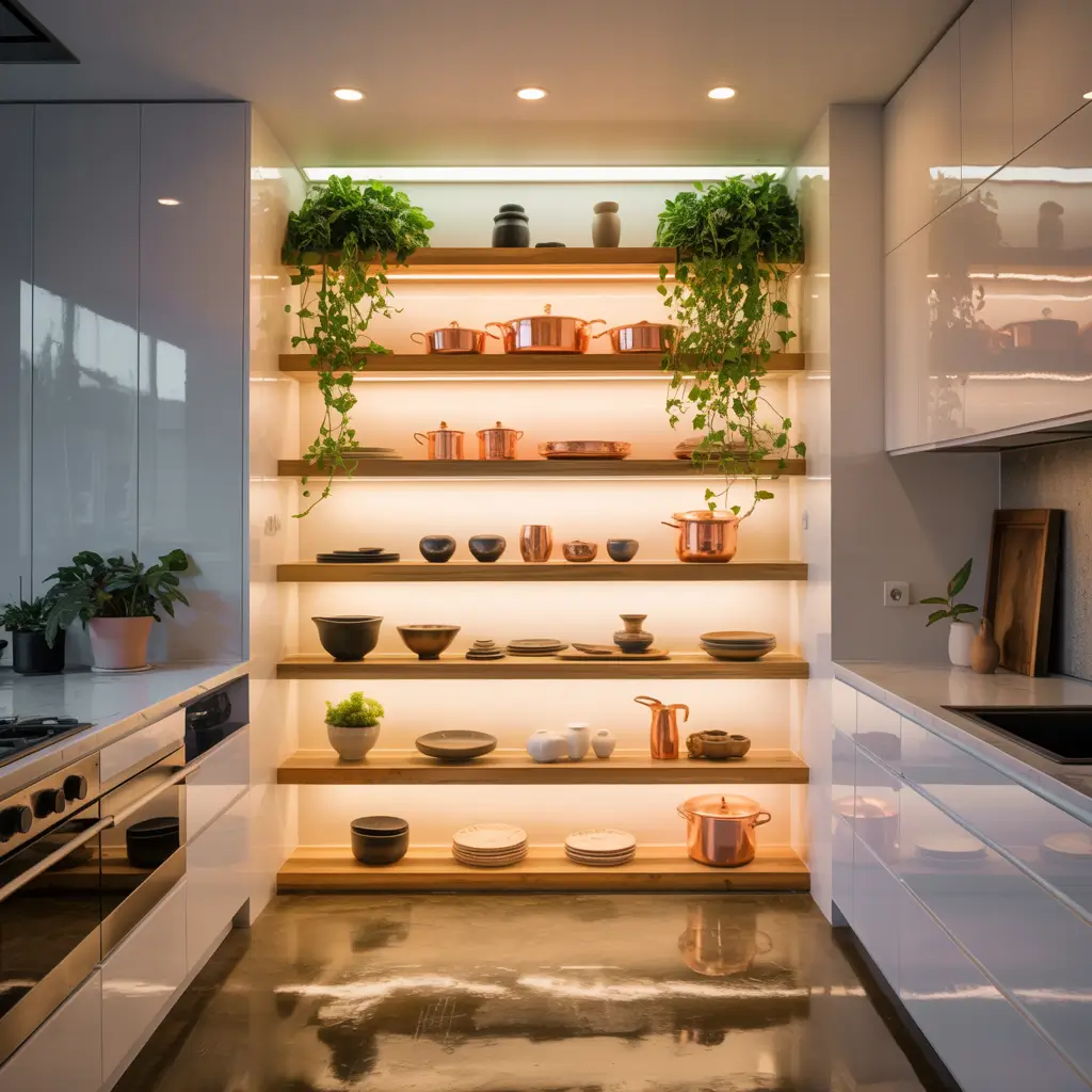 Shelves with integrated lighting turn functional storage into ambient art. My LED-lit shelves make my kitchen feel like a high-end restaurant, even when I’m just reheating leftover pizza. The built-in illumination creates depth and drama that regular shelves can’t touch.