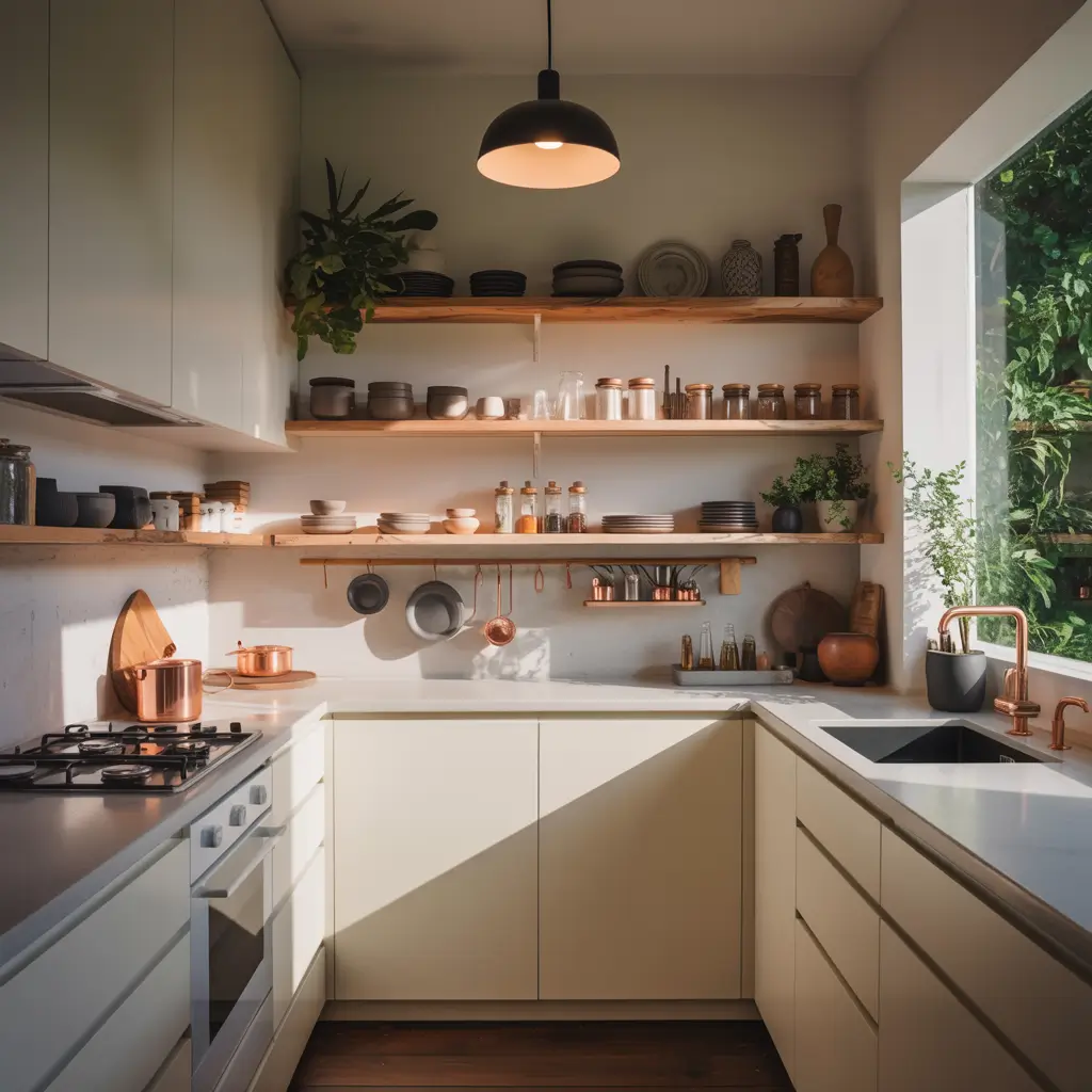 Space-Saving Open Shelves for Small Kitchens: The Tiny Kitchen Hero