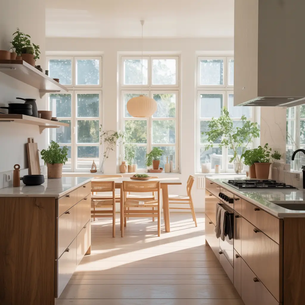 The magic of Scandinavian open kitchens lies in their balance of warmth and simplicity. Light woods like birch, ash, or white oak create warmth without heaviness. Pair them with white walls and black accents, and you’ve got that signature Scandi contrast that makes everything pop.