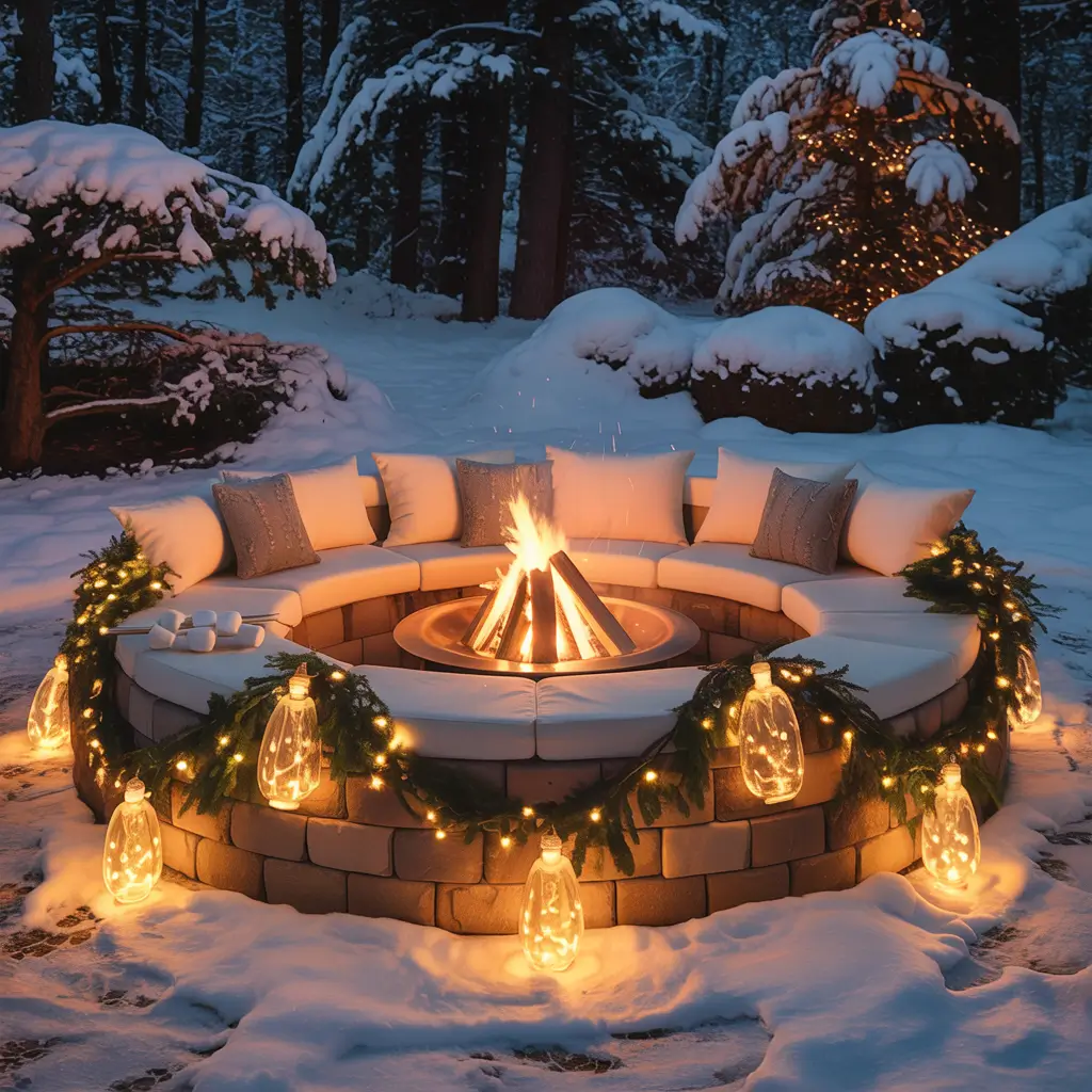 The firepit itself becomes a focal point with surrounding decorations. During parties, the actual fire provides warmth and ambiance. When not in use, fill it with ornaments and lights for purely decorative purposes.