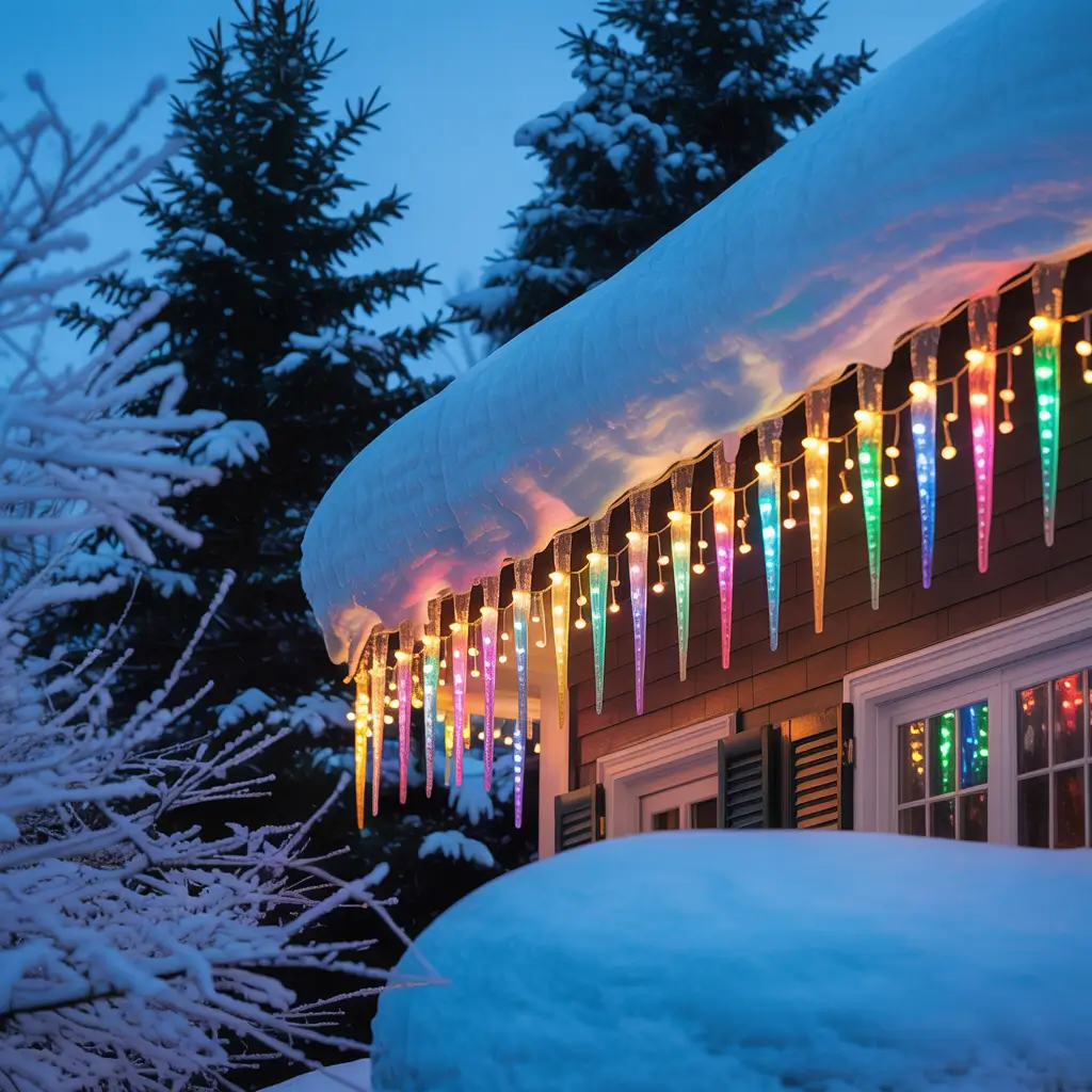 Consistency is everything. Use clips designed for your gutter type, space them evenly (I measure because I’m particular like that), and keep lines straight. Droopy, uneven icicle lights look like you gave up halfway through. Mix steady and twinkling bulbs for depth – all twinkling causes sensory overload.
