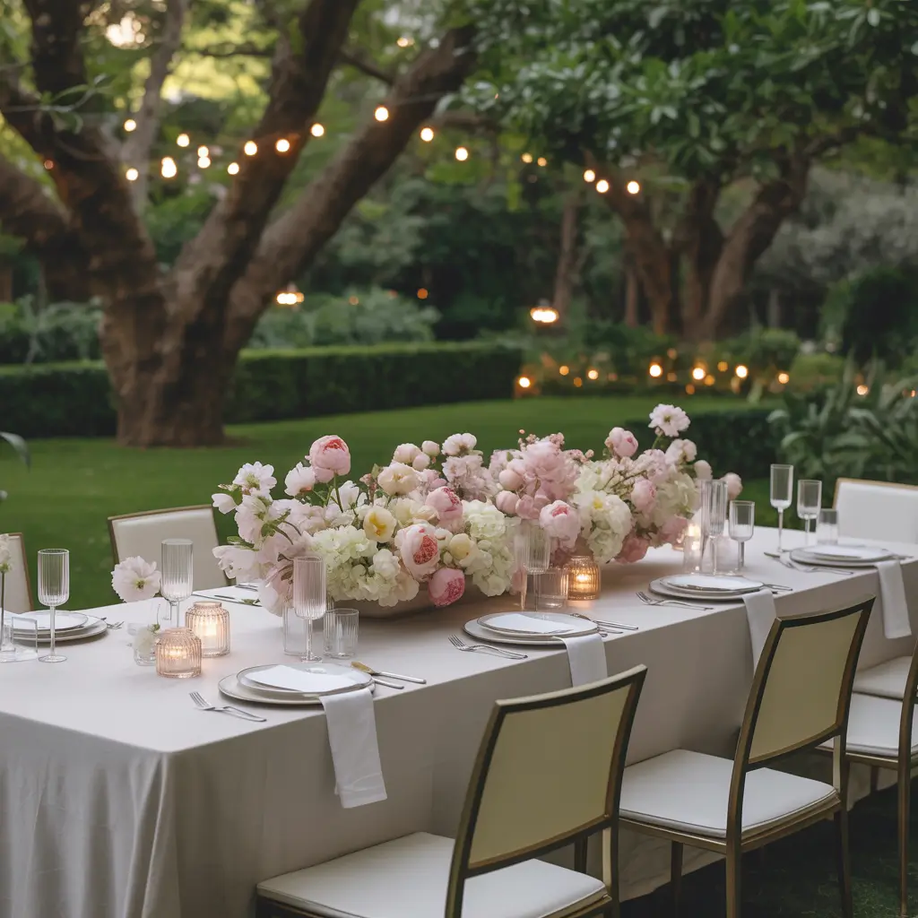 Elegant garden dining works because it creates contrast. Fine dining elements against natural backdrops feel special rather than stuffy. The outdoors softens formality while the elegant touches elevate the natural setting.