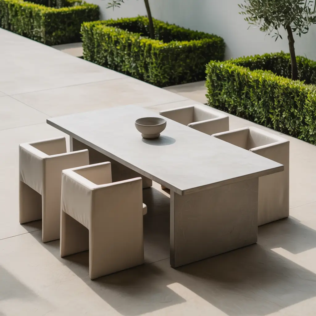 Modern minimalist outdoor dining strips away excess to focus on clean lines, quality materials, and the beauty of simplicity. This approach makes maintenance easier while creating sophisticated outdoor spaces.