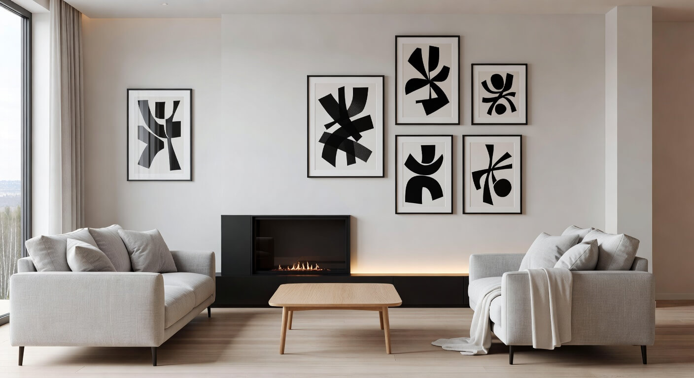- Minimalist home: simple gallery wall, clean-lined art, restrained shelves