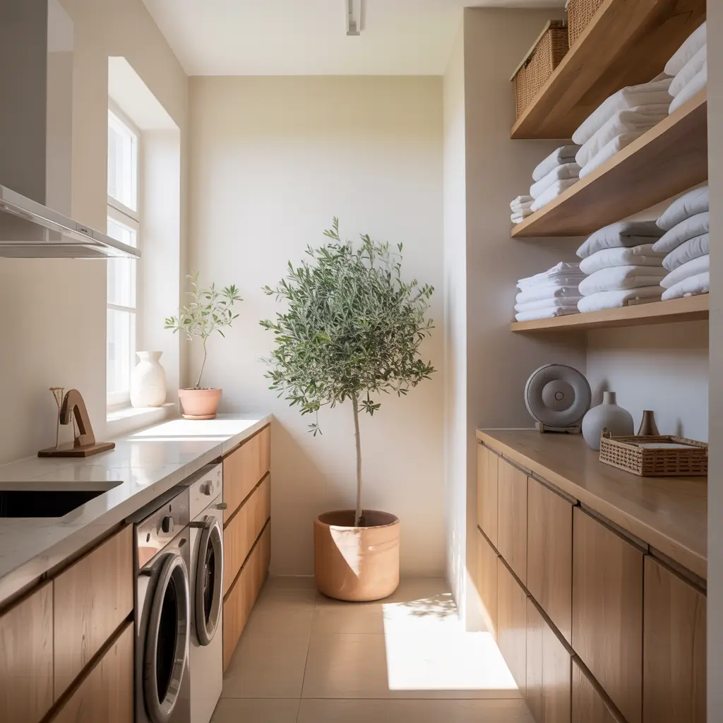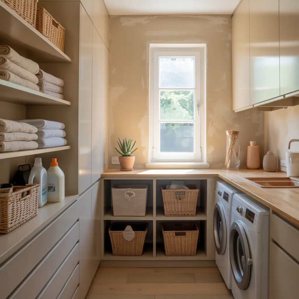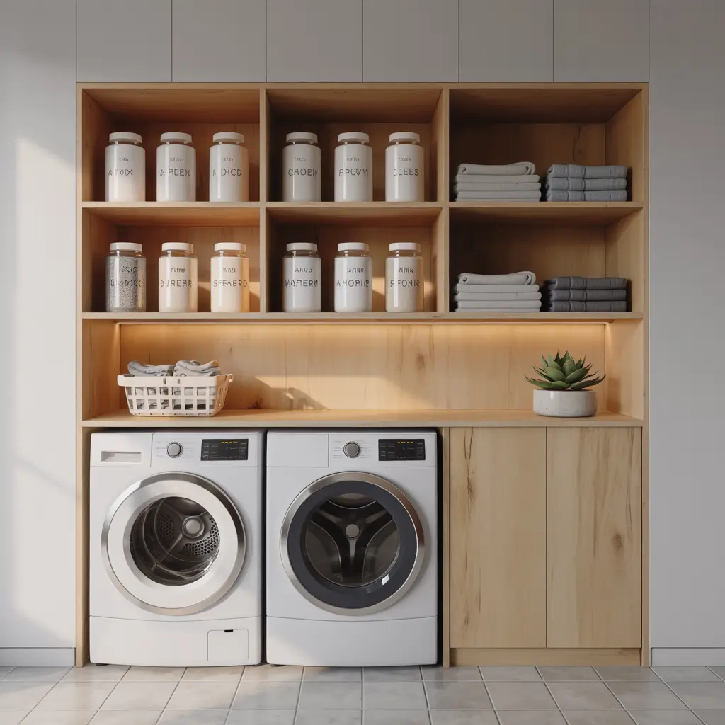 Built-ins make everything look expensive, even if you DIY’d the whole thing with MDF and determination. Creating a custom built-in layout around your washer and dryer transforms basic appliances into an integrated system.