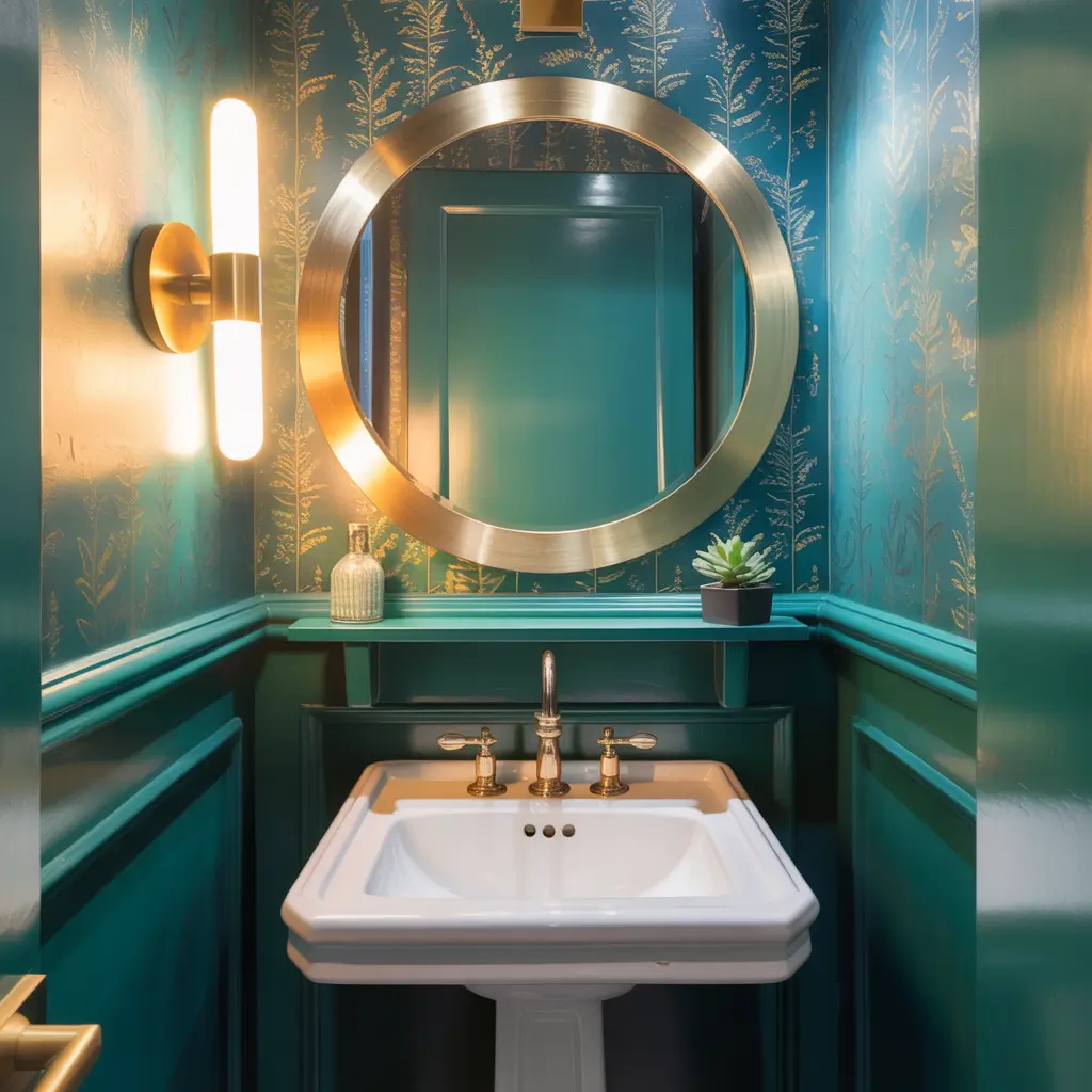 Think of your powder room as a jewel box. Bold wallpaper works incredibly well here because you’re dealing with limited wall space. That tropical print or geometric pattern you’ve been eyeing? This is where it belongs. The pedestal sink keeps the space from feeling cramped despite the busy walls.