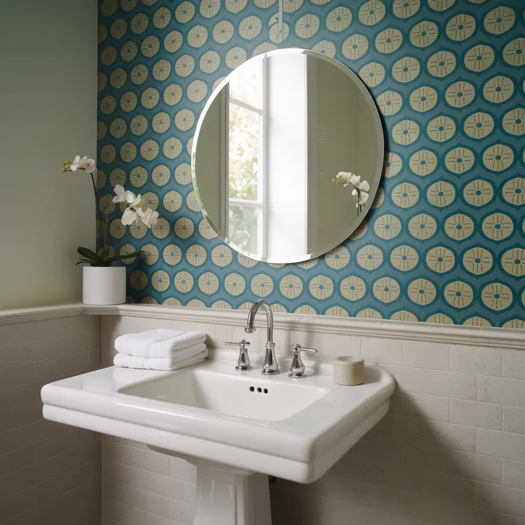 Can we normalize going absolutely wild with wallpaper behind pedestal sinks? The clean lines of the sink balance out even the busiest patterns, creating this perfect design tension that just works.