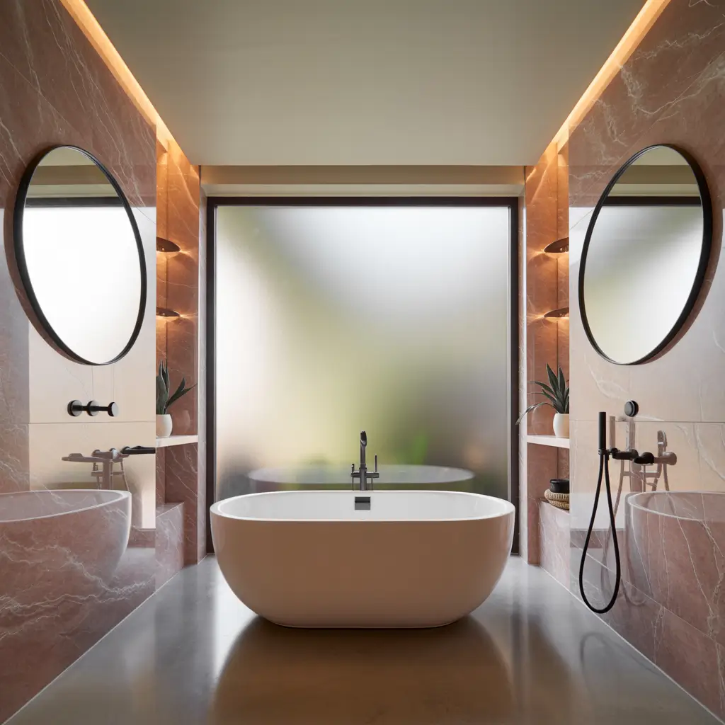 I splurged on Rosa Portugués marble for my shower surround, and every shower feels like a luxury experience. The veining in pink marble is just gorgeous – swirls of white, gray, and deeper rose creating natural art on your walls. Add a matte black rainfall showerhead and frame, and suddenly your daily shower becomes the highlight of your morning routine.