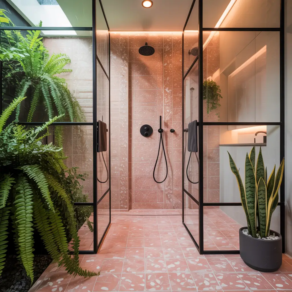 I recently installed peachy-pink tiles in my master bath, and every morning feels like I’m getting ready in a fancy hotel. The black fixtures – think rainfall showerhead, towel bars, and toilet paper holder – create these amazing focal points against the soft backdrop. It’s like wearing a leather jacket with a floral dress, you know?