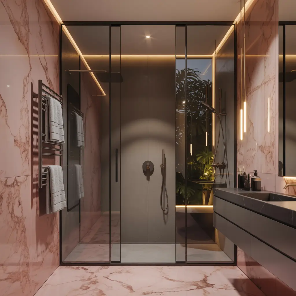 Luxury Pink Marble with Matte Black Shower