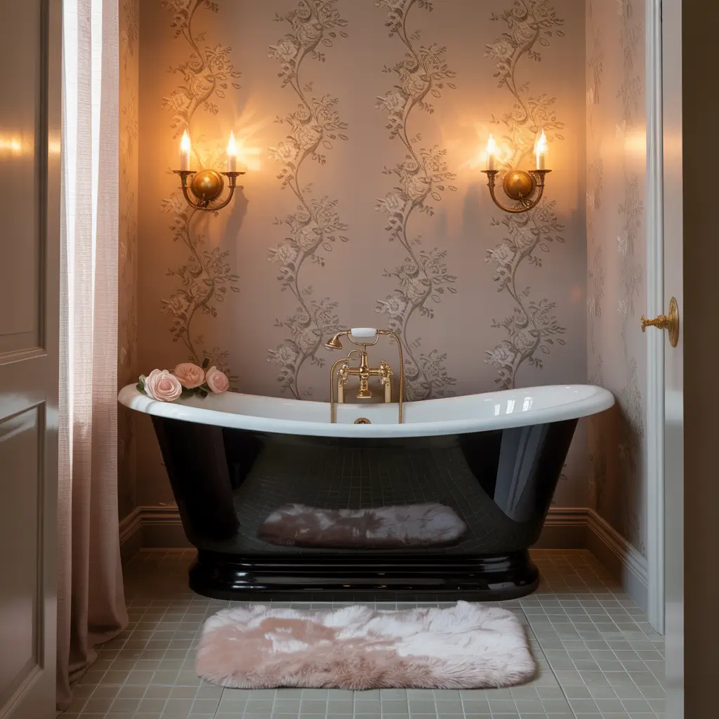 Think ruffled pink shower curtains with black tile floors. Or a vintage pink clawfoot tub with modern black walls. I added a crystal chandelier to my pink and black bathroom, and the sparkle against the dark elements? Absolutely stunning. It’s proof that feminine doesn’t mean weak – it’s just another form of bold.