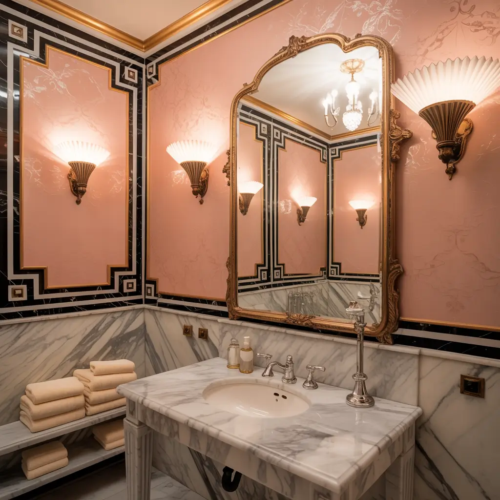 Art Deco Pink and Black Glam Bathroom