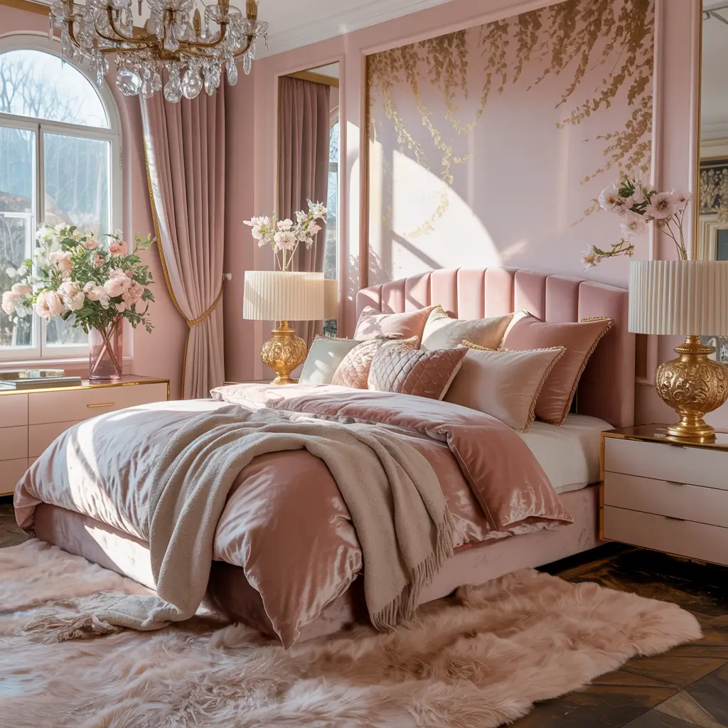 - Luxe Pink Walls: Opt for a rich dusty rose, a deep mauve, or even a soft fuchsia on your walls. These pinks provide a decadent backdrop for the gold and instantly elevate the room’s glam factor. Test swatches first, because pinks can be tricky!