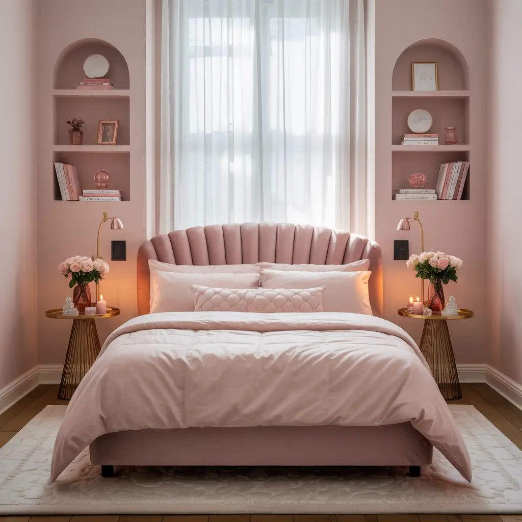 - Light Blush Walls: Paint walls a very light, airy blush pink. Darker colors can make a small room feel smaller, but a pale blush actually reflects light, making the space feel more open and bright.