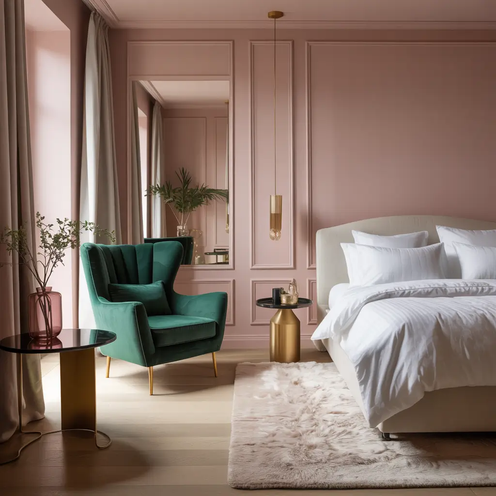 If you’re looking for that “wow” factor without going full-on maximalist, blush pink walls with emerald green accents are your secret weapon. This combination feels incredibly luxurious, like you’ve just stepped into a high-end boutique hotel. Seriously, I once stayed in a hotel with this exact color scheme, and I almost tried to steal their throw pillows. Almost.