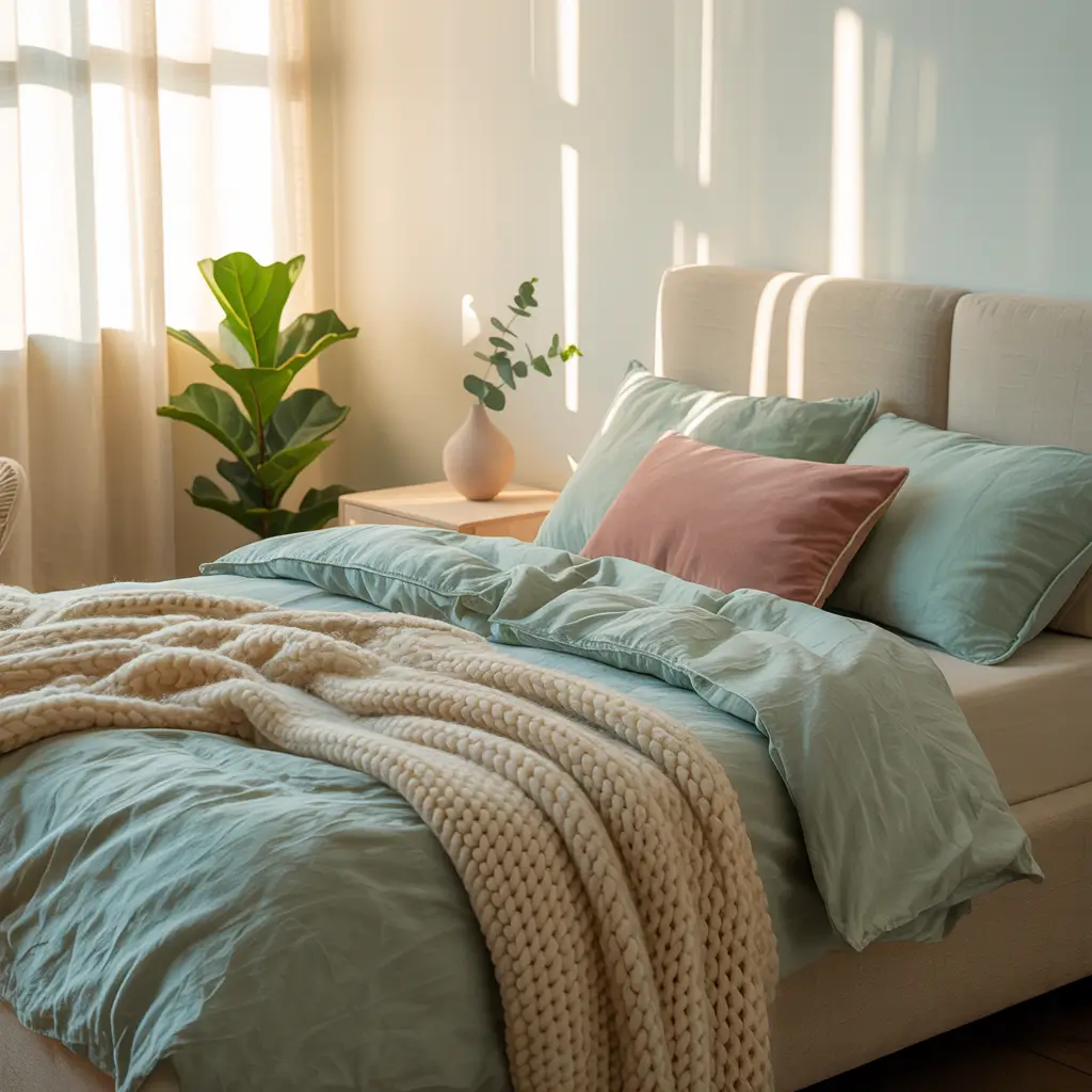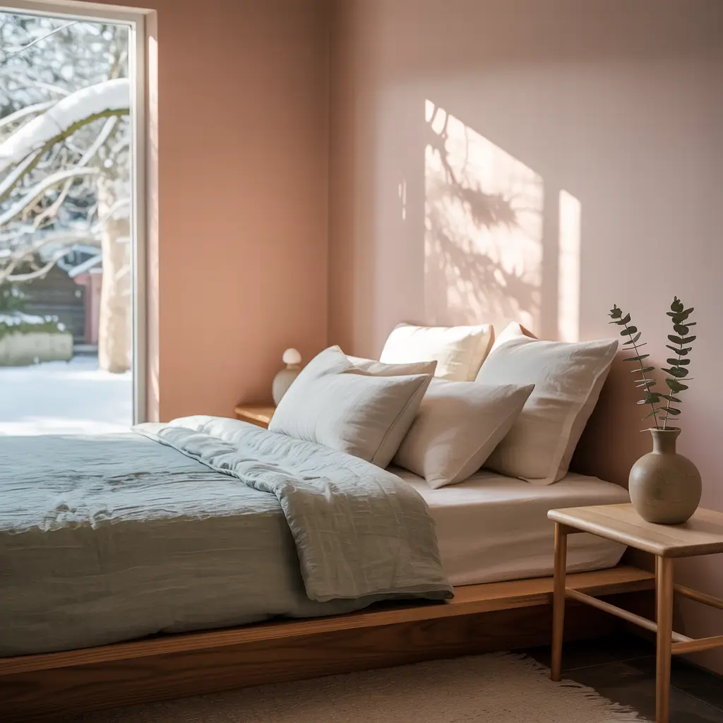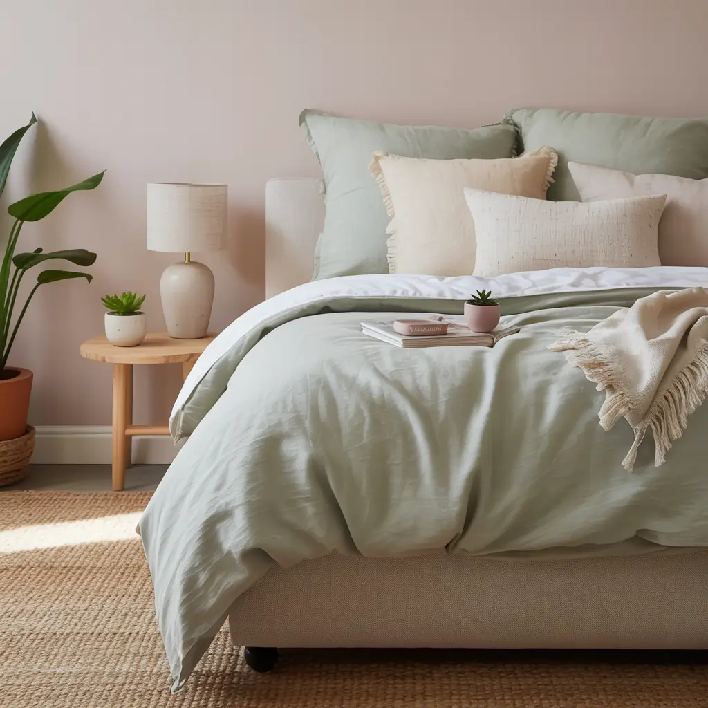 • Clean Linens: Opt for high-quality linen bedding in either a blush pink or a soft sage green. The texture of linen adds visual interest in a minimalist space.