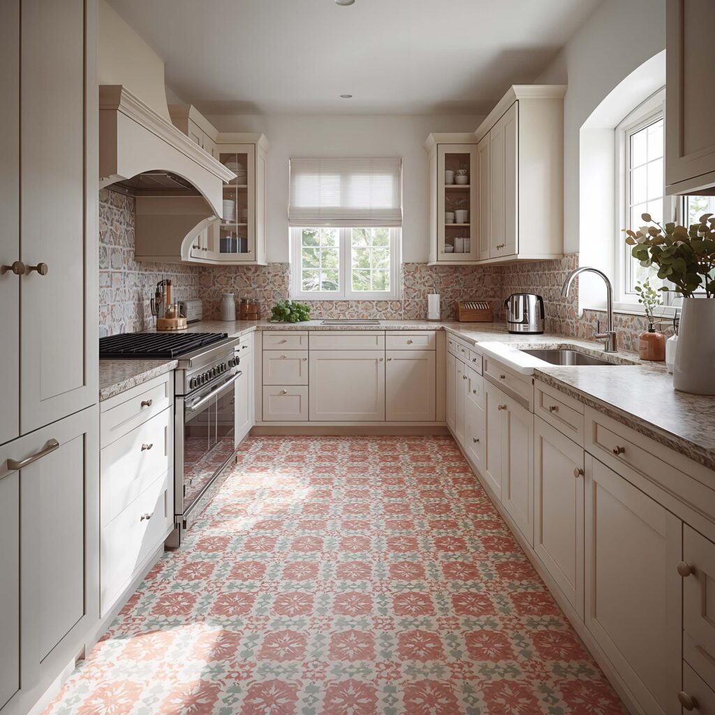 Remember when patterned tiles were considered dated? Well, they’re back with a vengeance, and pink and green patterns are leading the charge. Whether you go for geometric shapes, florals, or abstract designs, patterned floor tiles can completely transform your kitchen.