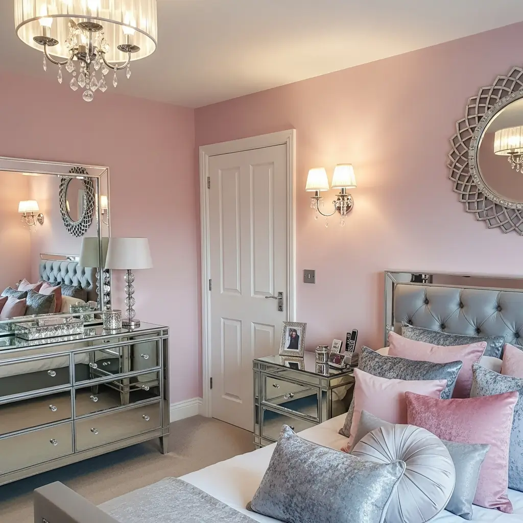 For those who dream of a bedroom that feels like a Hollywood movie set, a glamorous pink and silver grey bedroom delivers sparkle, sophistication, and undeniable allure. This combination is all about high shine, plush textures, and a touch of drama.