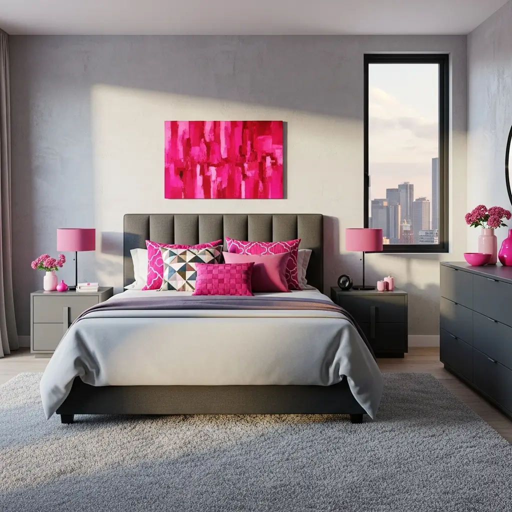 Sometimes, you want to ground a space with neutral tones, but still demand attention with vibrant accents. That’s where grey textures with bold pink highlights come in. This idea lets grey take the lead in creating depth and visual interest, while vibrant pinks offer energetic pops that prevent boredom.