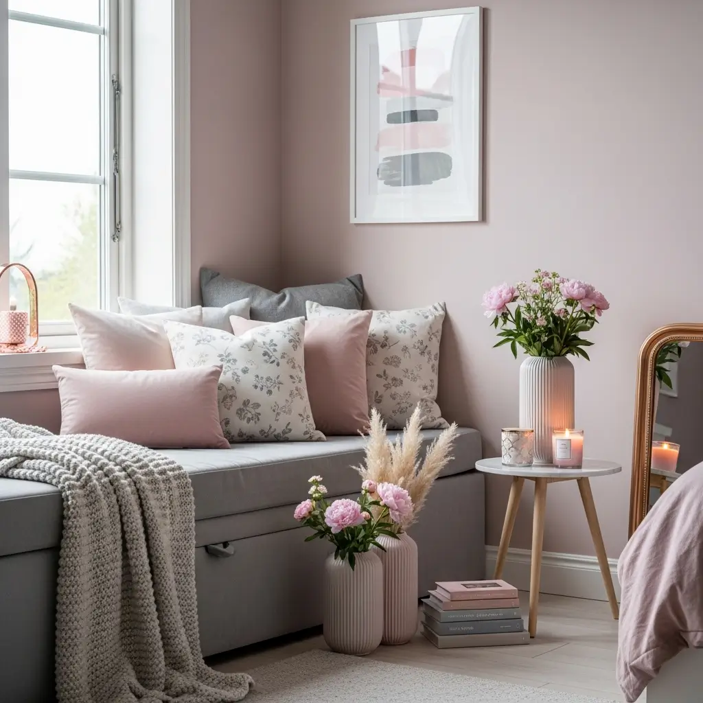 - Warm Pink Base: Consider painting an accent wall in a warm, muted pink to provide that cozy, inviting foundation.