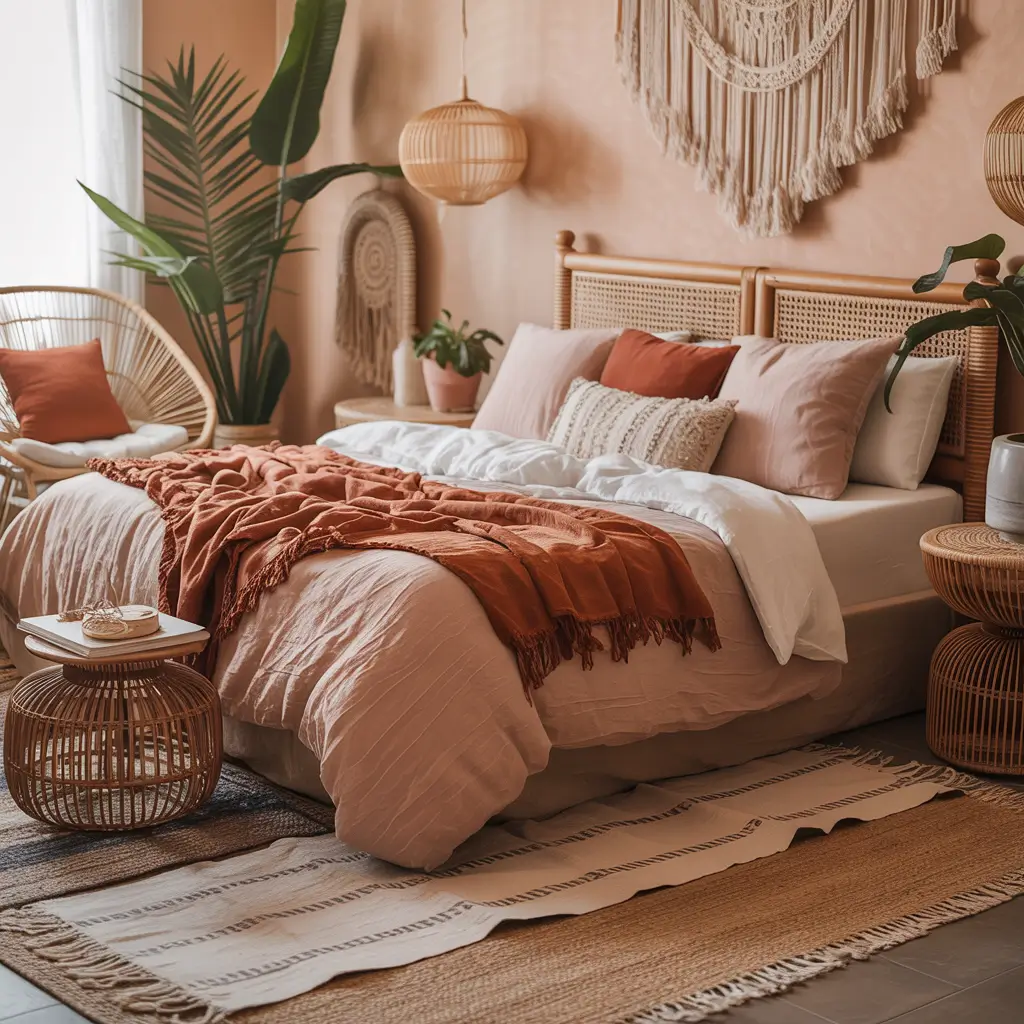 Ever walked into a room and immediately felt like you should be sipping herbal tea and burning incense? That’s the vibe we’re creating here. Blush pink and burnt orange create the perfect boho sanctuary when you layer them with the right textures and patterns.