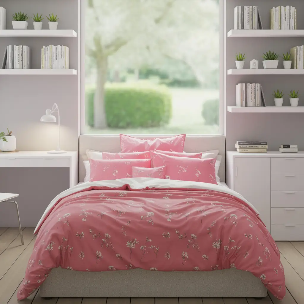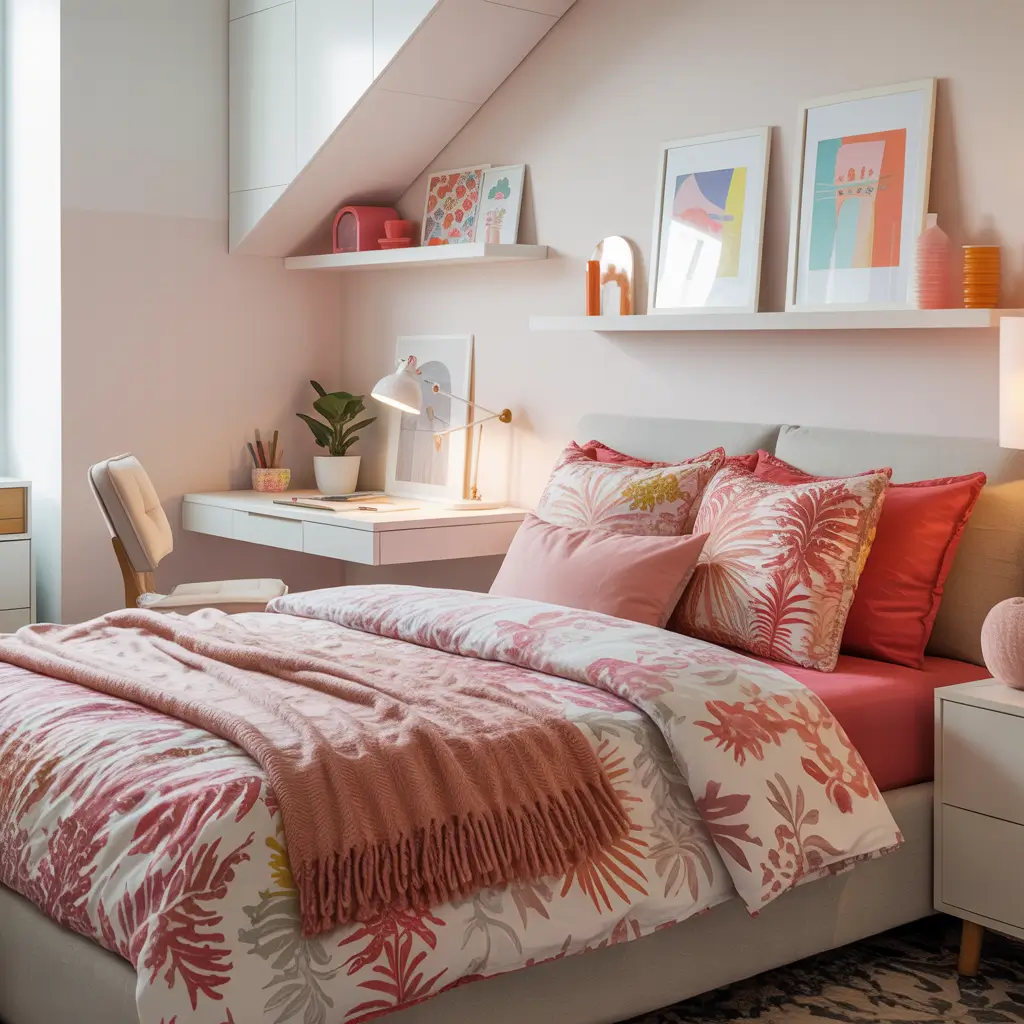 Small bedrooms actually benefit from strategic use of pink and white. This color combination opens up tiny spaces while adding personality that all-white rooms lack.
