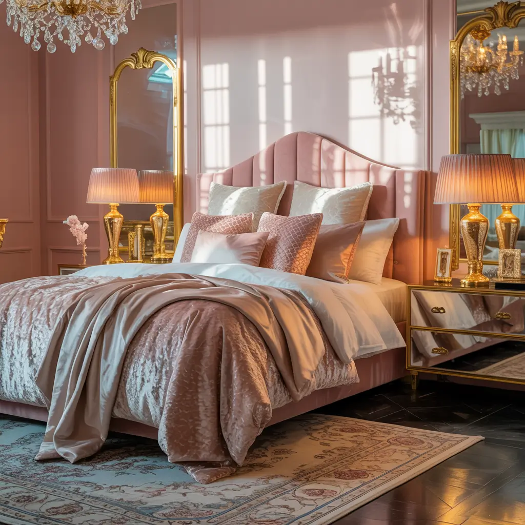 I went full glam in my guest bedroom last year – dusty pink walls, gold mirror, pink velvet headboard with gold legs. My mother-in-law called it “aggressively glamorous,” which I’m taking as a compliment. The key lies in balancing matte and metallic finishes so nothing gets too shiny or too flat.