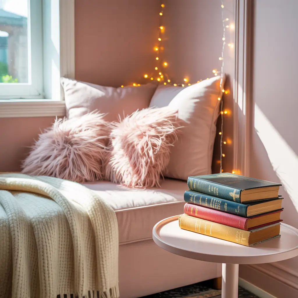 Not ready to commit to a full pink bedroom? Start with a corner. A pastel pink cozy corner transforms dead space into your favorite spot without overwhelming the room.