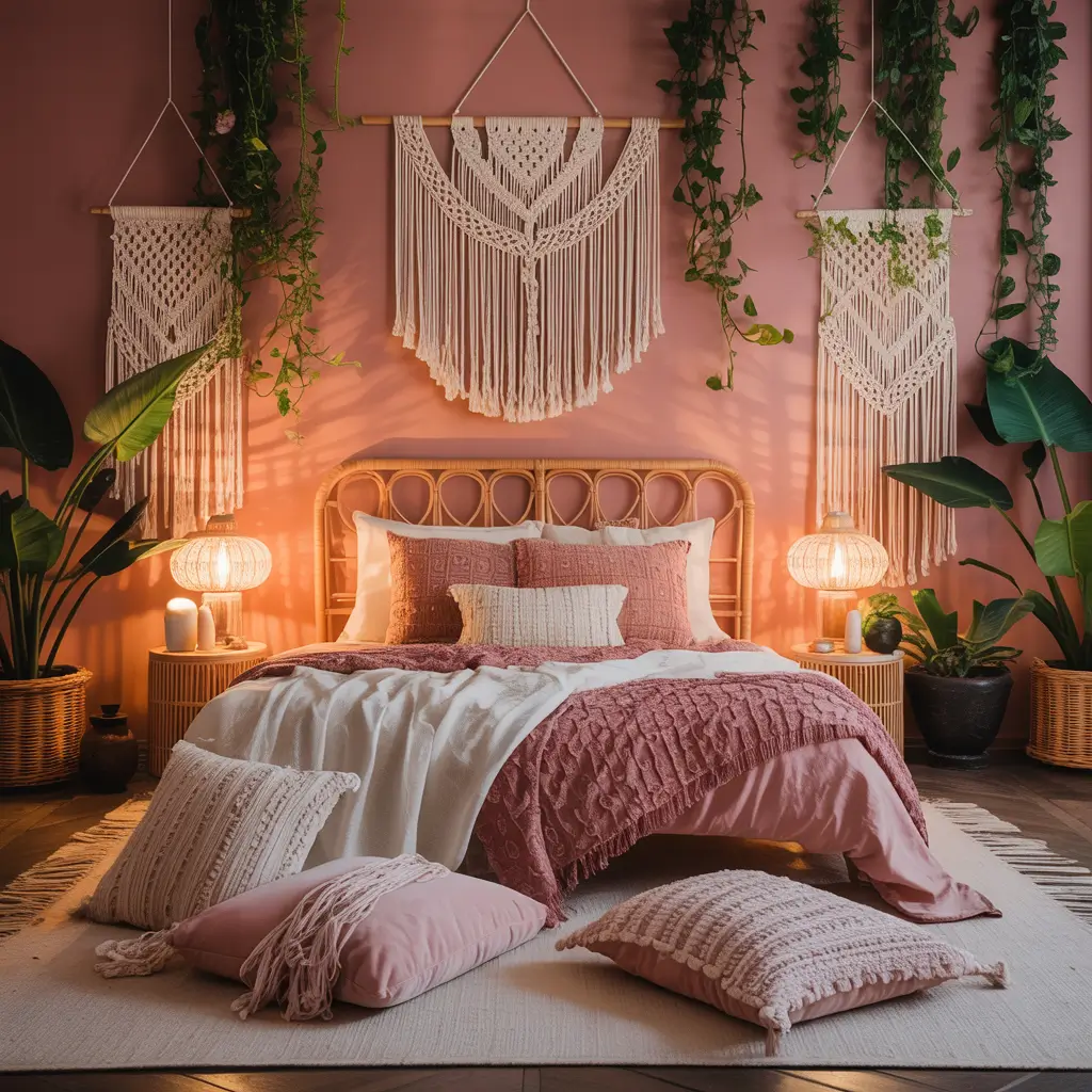 Boho and pink might seem unlikely friends, but dusty rose creates sophisticated boho that transcends college dorm vibes. This muted pink grounds typical boho chaos into something actually livable.