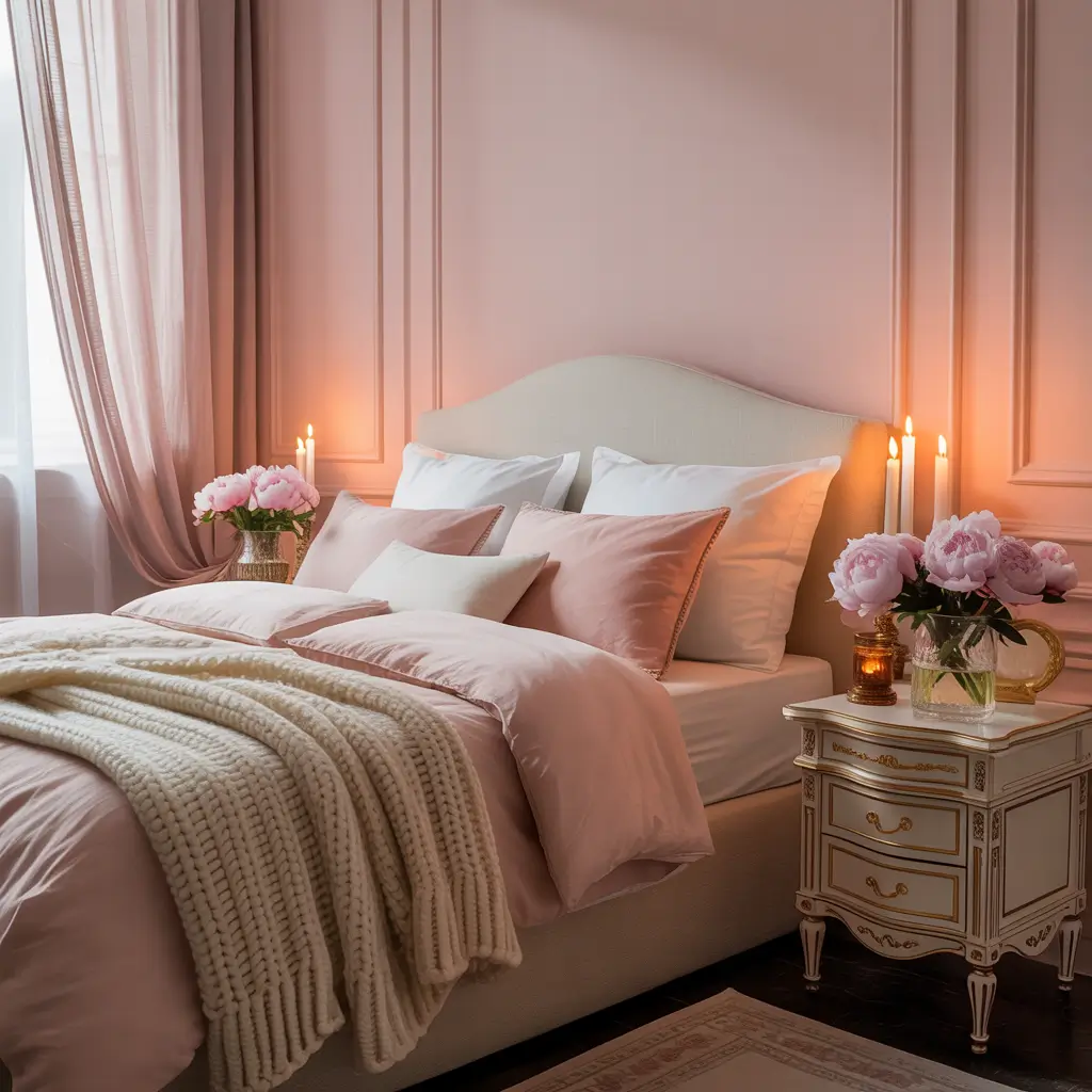 My master bedroom uses three pink shades with cream and white, creating layers without overwhelming sweetness. Romance comes from softness and warmth, not cliché decorations. Even my very pragmatic husband admits he sleeps better surrounded by pink 🙂