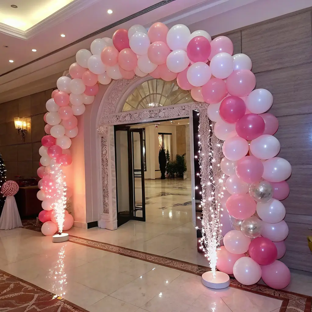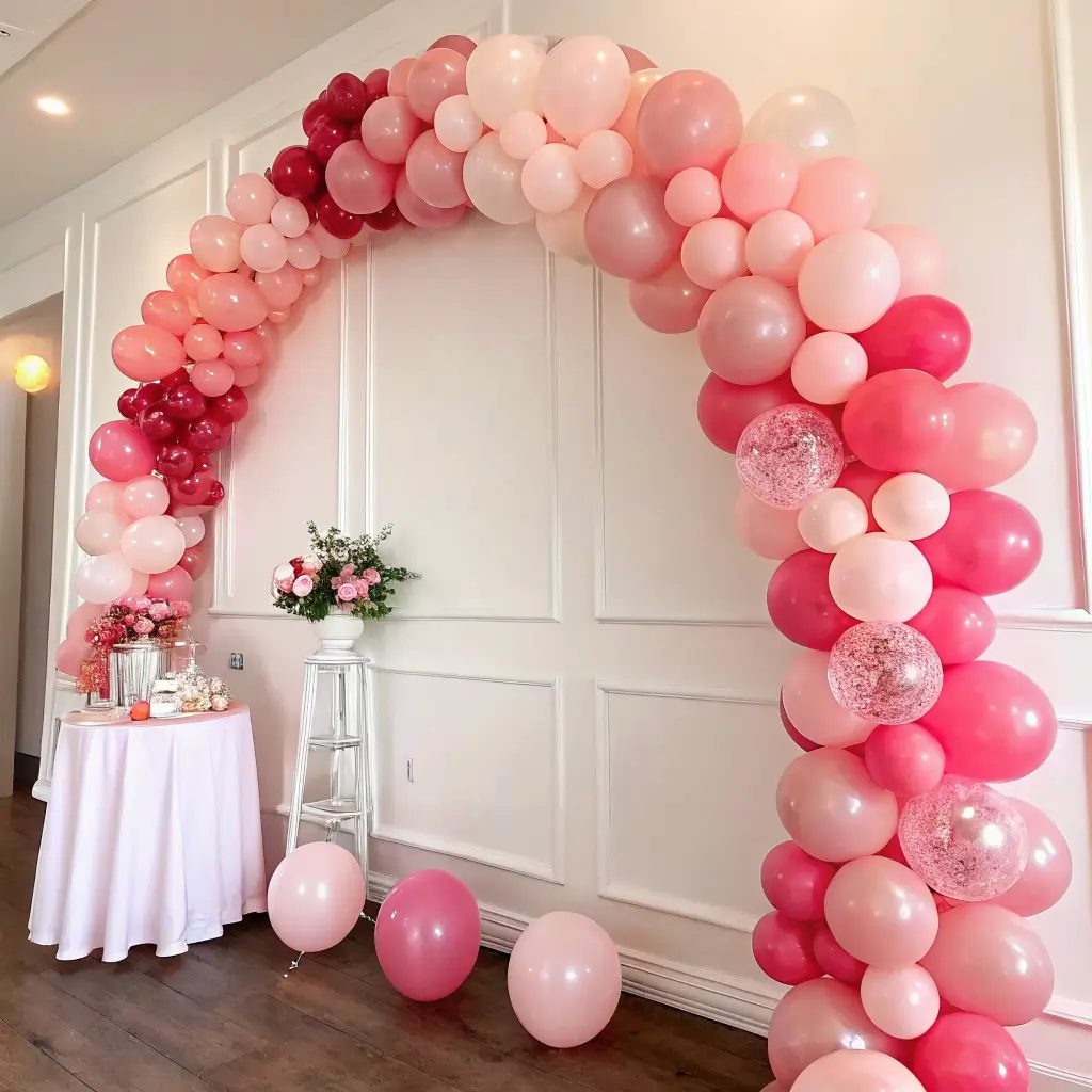 Place the lightest balloons at one end and deepen the shade gradually. That smooth transition creates the signature ombre effect and makes your pink birthday balloon decor look much more polished.