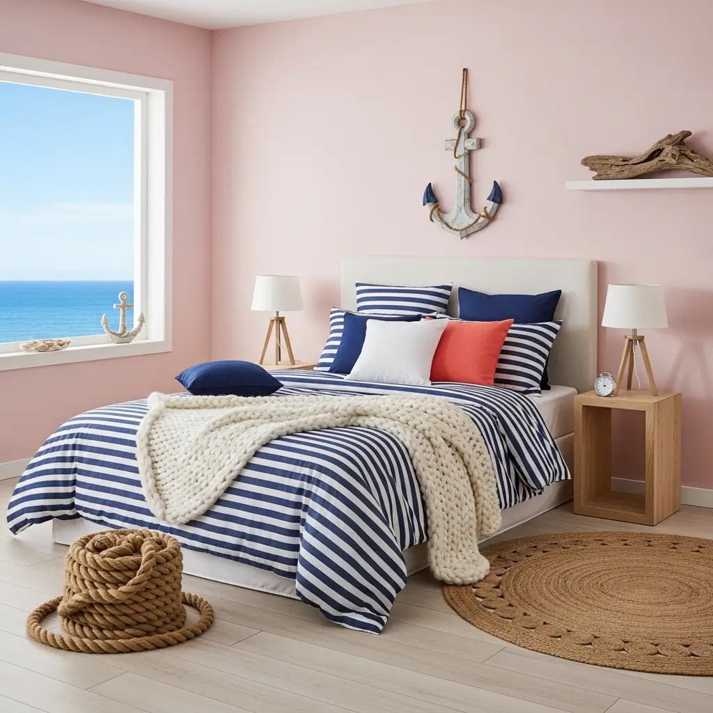 Who says nautical has to mean navy and white stripes forever? Soft pink brings fresh energy to nautical style without losing those classic maritime elements we love. Think of it as nautical’s feminine cousin who studied abroad and came back with better taste.
