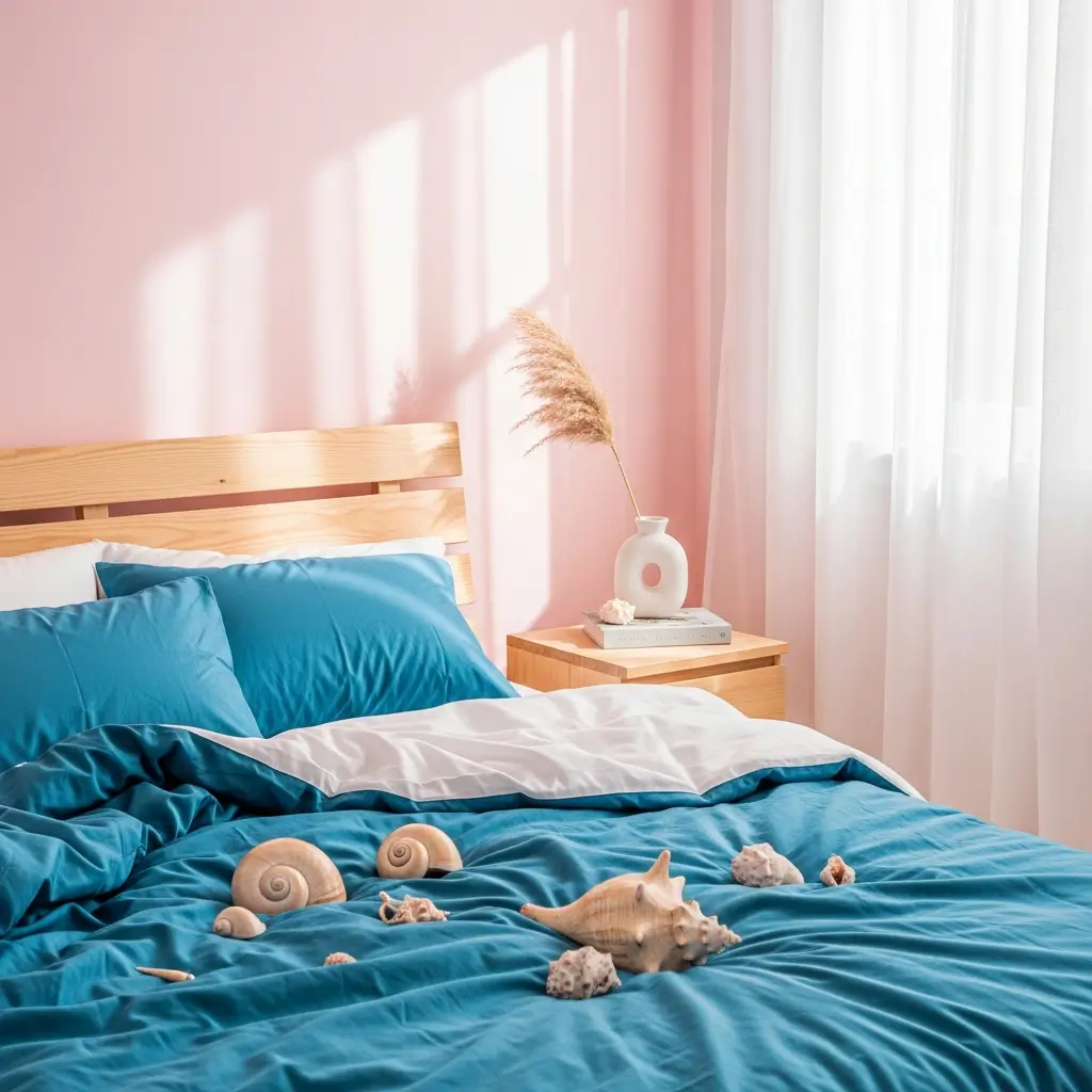 Invest in quality pink linen bedding, then layer with coastal textures like jute, rattan, and weathered wood. I switched to pink linen sheets last year, and besides looking amazing, they keep me cool during humid beach nights. The rumpled texture of linen also means you never have to make your bed perfectly 🙂