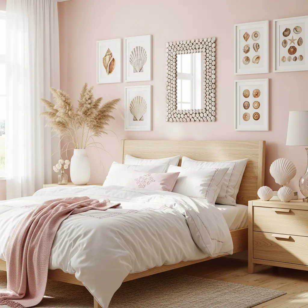 The ratio matters here. Think 70% white, 20% blush, 10% natural textures. Any more pink and you lose the coastal feel.
