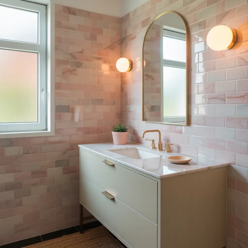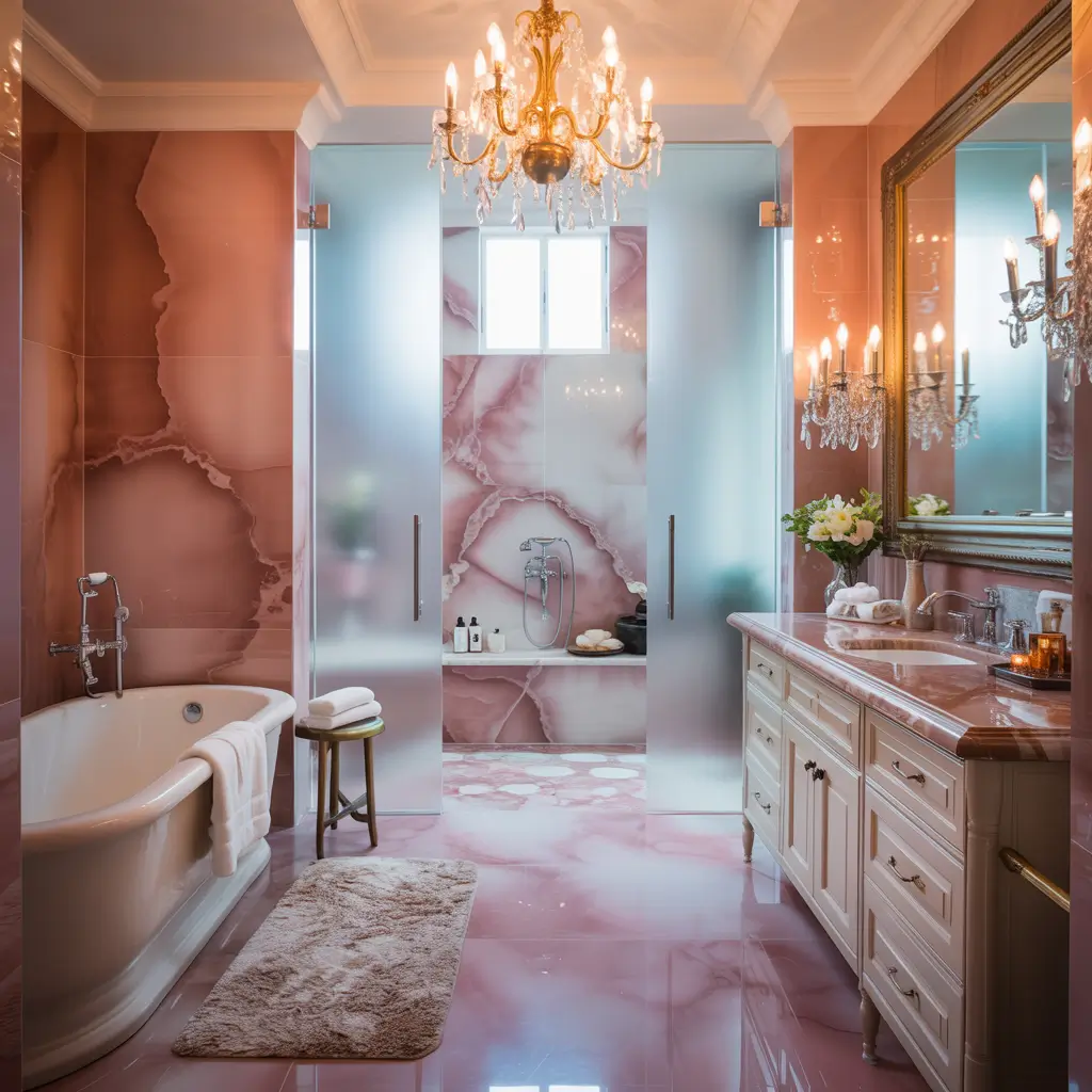 Want to make a statement? Pink marble floors with contrasting walls create incredible impact. I did this in my master bathroom with soft pink marble floors and crisp white walls, and the combination feels both fresh and luxurious.