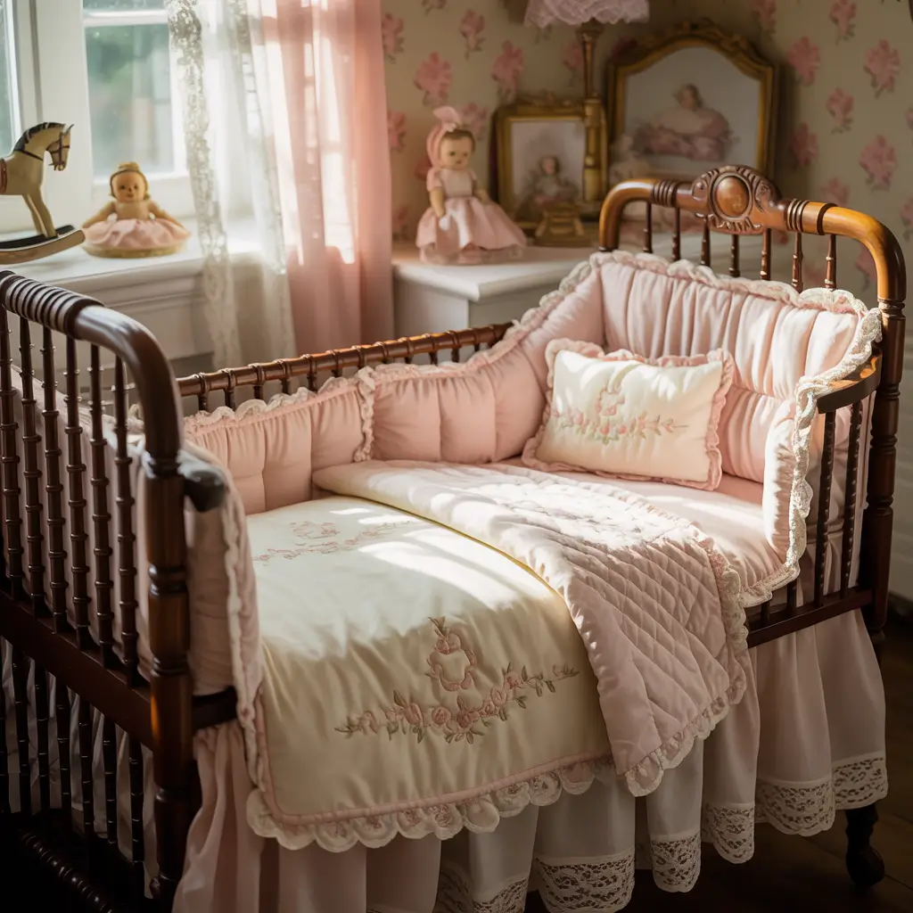 Vintage pink floral nurseries tap into that English garden cottage fantasy we all secretly have. This style embraces romance and whimsy without apologizing for being “too girly.” My vintage floral nursery features five different pink floral patterns, and somehow it works.