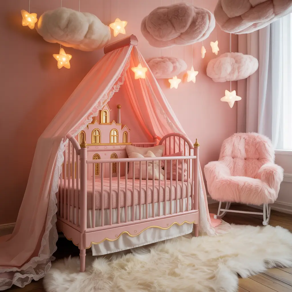 Fairy tale pink nurseries give you permission to go full fantasy. This is where pink castles, unicorns, and sparkles actually belong. My daughter’s fairy tale nursery looks like a princess exploded, and I regret nothing.