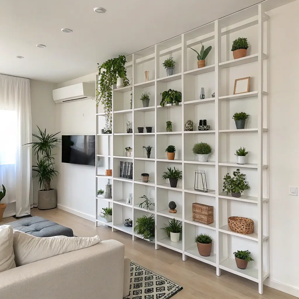 The beauty of grid shelving lies in its flexibility. You can add or remove shelves, adjust spacing, and reconfigure as your collection grows. Because let’s be honest, your collection will grow. Plant math is different from regular math – you always need just one more.