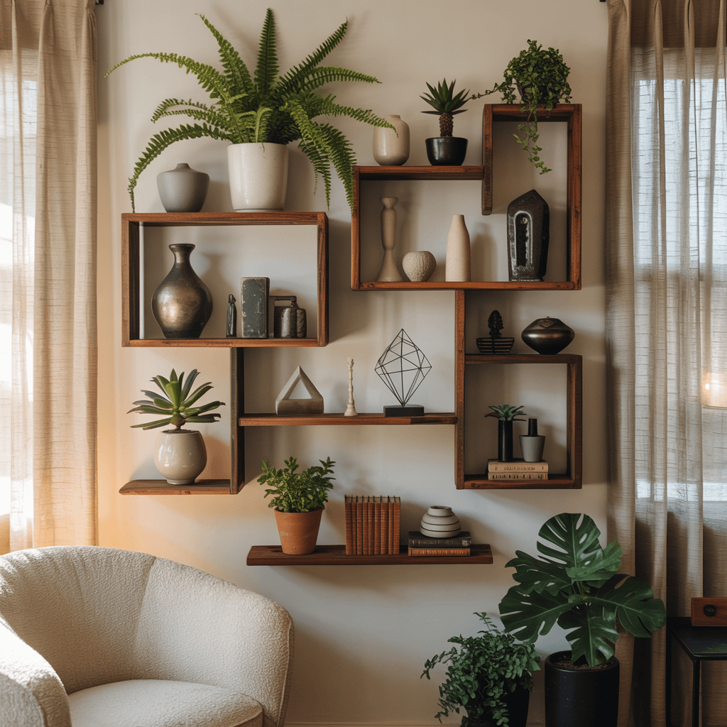 Asymmetrical shelving turns your plant display into functional art. Instead of predictable rows, you get dynamic visual interest that makes people stop and really look. My asymmetrical arrangement gets more compliments than my symmetrical shelves ever did.