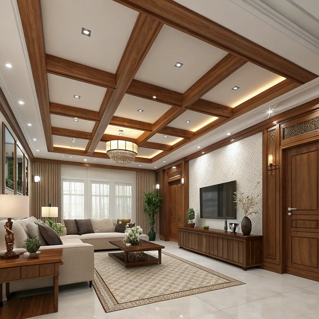 Combining POP with wood creates warmth that pure white POP can’t achieve. I added wooden beams to my POP ceiling design, and the mix of materials adds incredible visual richness.