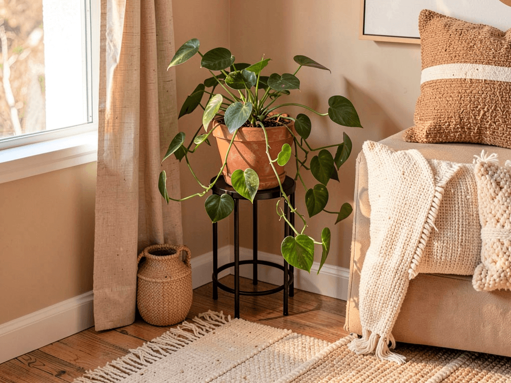 Corner spaces often get ignored, but hanging a pothos there instantly softens harsh angles. I’ve got one in my bedroom corner, and it transformed that dead space into my favorite spot.