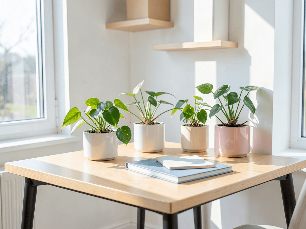 Who says you need massive planters to make a statement? Mini pothos planters on your desk bring nature to your workspace without eating up precious real estate. My home office has three tiny pothos plants, and they’ve completely changed my work-from-home vibe.