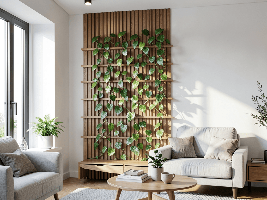 The trick lies in choosing the right trellis style. Geometric metal grids look super modern, while wooden lattices bring warmth to the space. I went with a black metal grid because it disappears against my dark accent wall, letting the pothos steal the show.