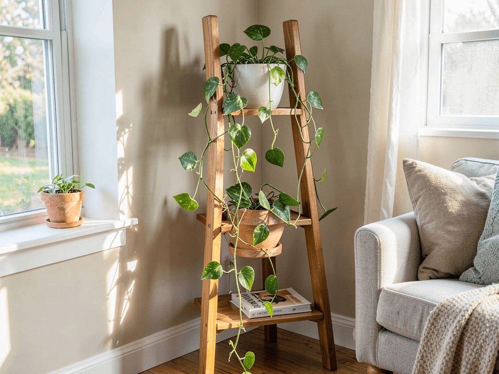 The tiered structure creates natural height variation, making even small pothos collections look substantial. Each rung becomes a stage for your green performers.