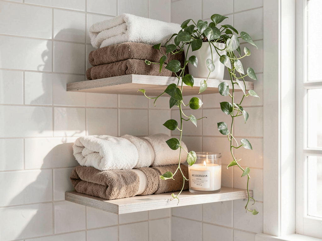 Choose shelves with water-resistant finishes or seal wooden shelves yourself. I learned this lesson the hard way when my untreated pine shelf warped like a funhouse mirror.