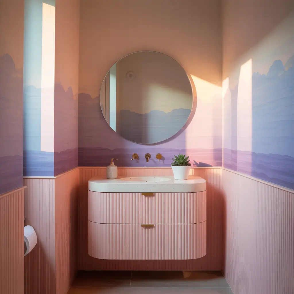 I installed a blush-to-cream ombre in my own powder room, and honestly? It makes everyone look better in the mirror. The soft color graduation acts like a real-life Instagram filter for your face. Win-win.