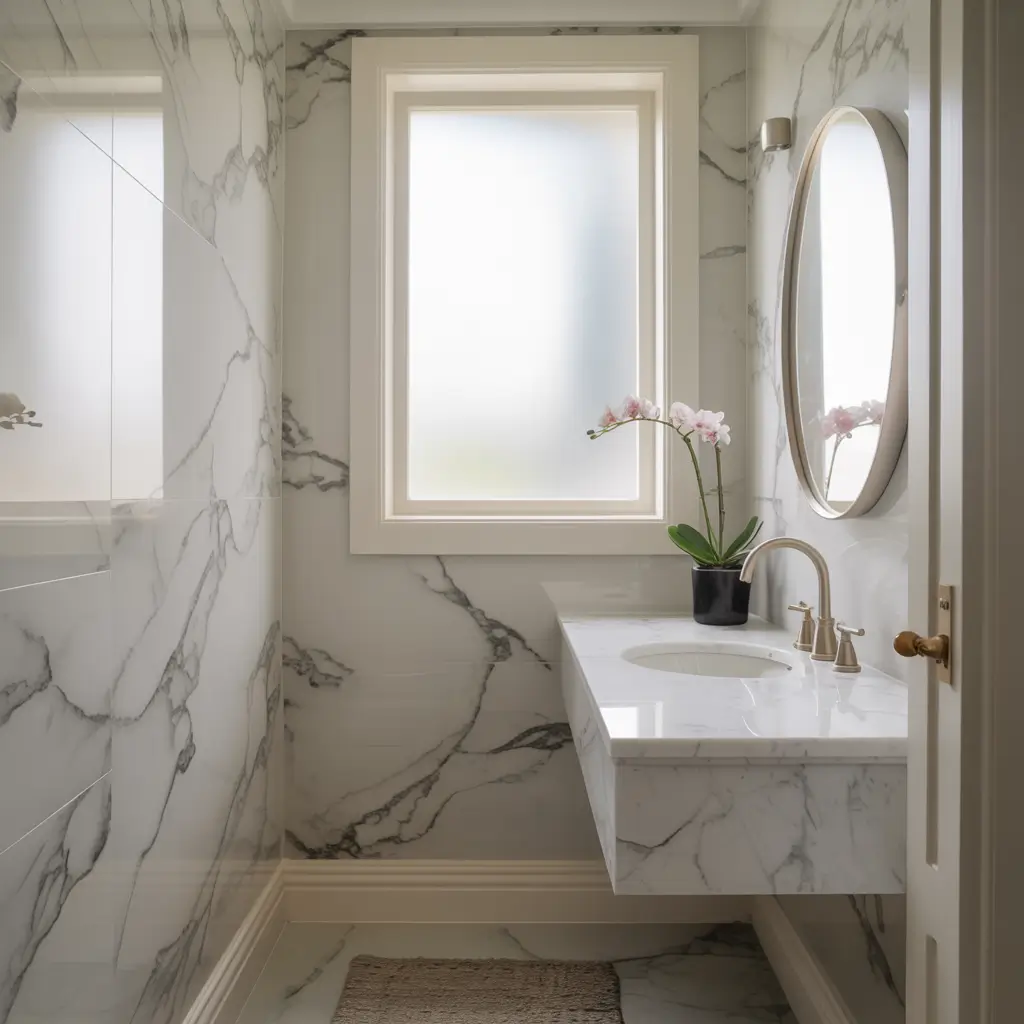 Elegant Marble Pattern Powder Bathroom Wallpaper