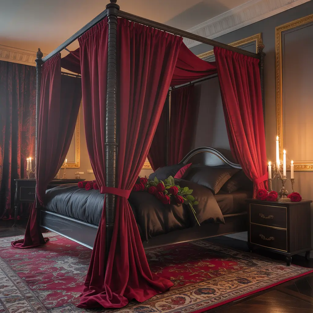 Romantic Red and Black Canopy Bedroom