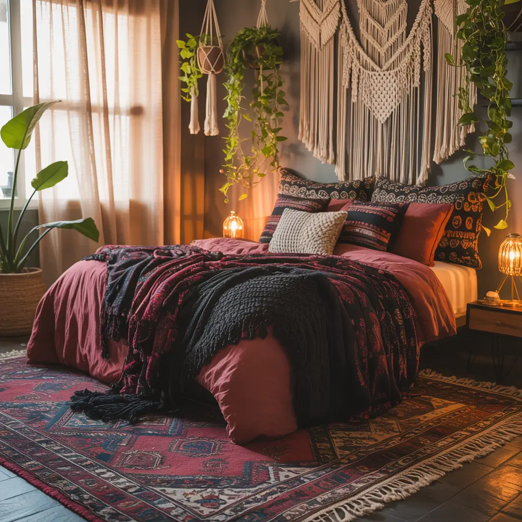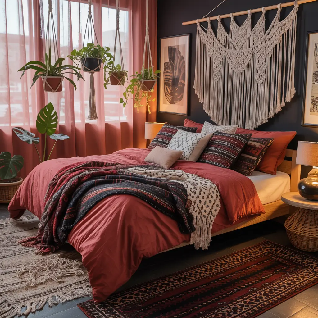 Red and Black Bohemian Chic Bedroom