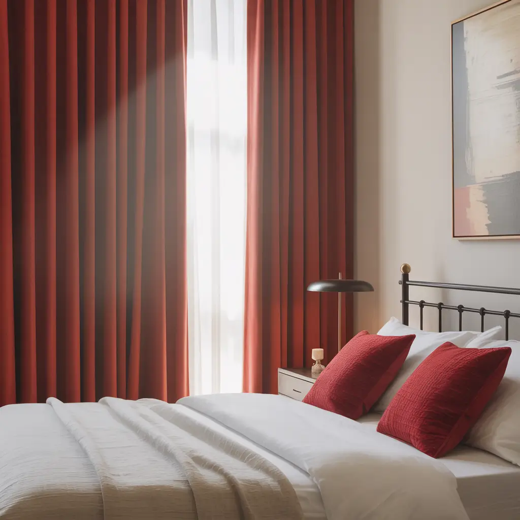 Light control matters here. Blackout lining in red curtains prevents that weird pink glow at sunrise (learned that one the hard way). And please, hang those curtains high and wide – closer to the ceiling than the window top, extending past the window frame. It’s a game-changer for making windows look larger.